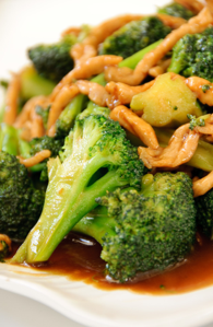 B:这是典型的美式中菜,是中餐外卖店的长胜将军,我家孩子的大爱。外卖店里一般用鸡肉,简称“芥兰鸡”。