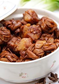 提前做:收汁快干时,将肉汁倒出备用。肉和百叶结倒进砂锅中加盖放进烤箱保温或上笼届最小火温。上桌前,热肉汁淋在肉上即可。